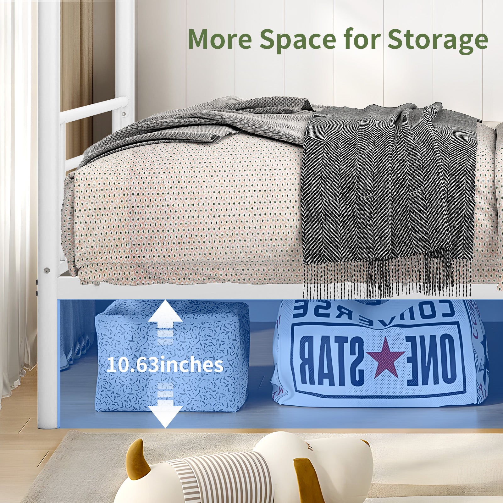 - 【Under-Bed Storage Solution】: With 10.63 inches of height underneath, the heavy-duty metal bunk bed offers handy storage space—great for keeping extra bedding, shoes, or personal items out of sight and your child's bedroom tidy.