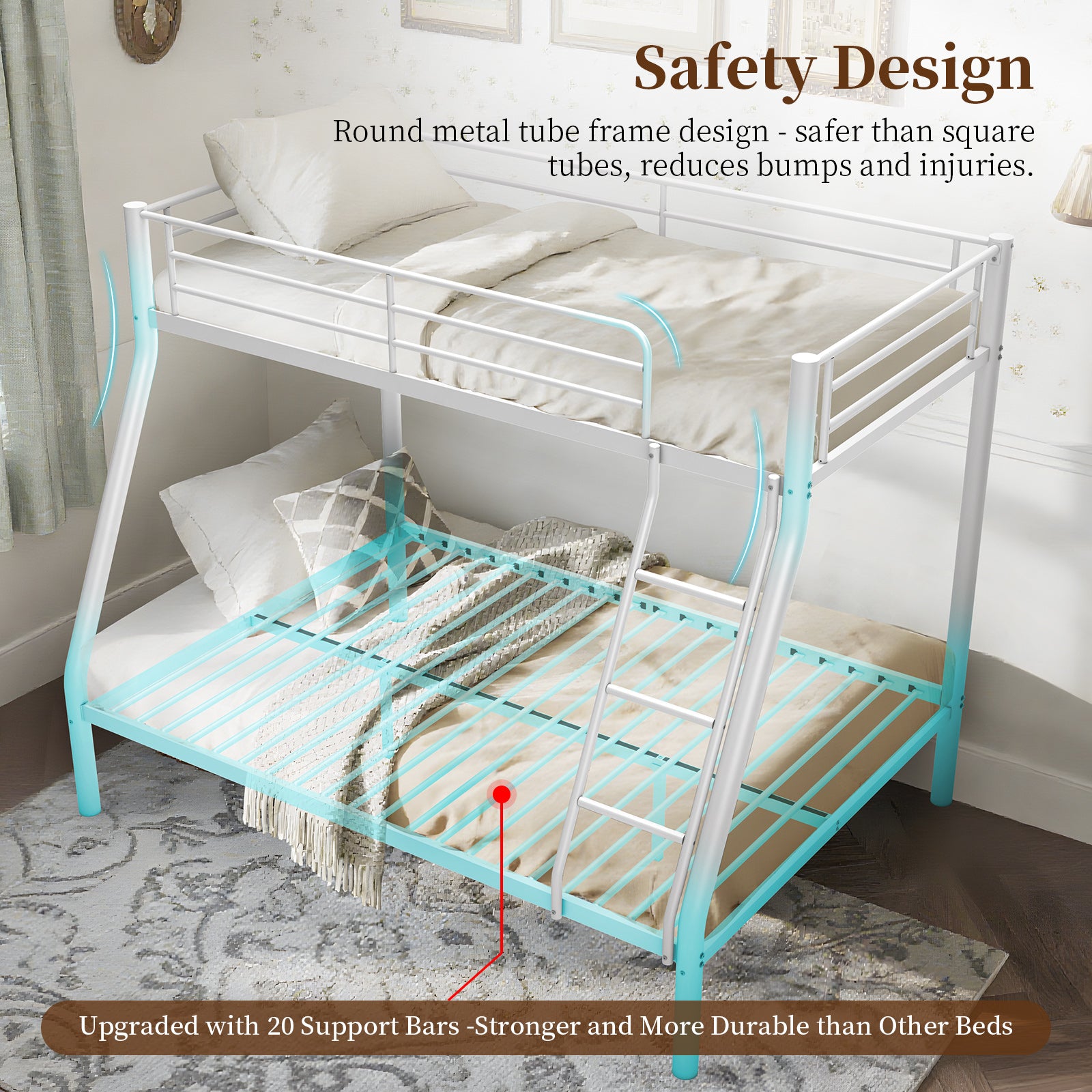 - 【Strong & Reliable Support】: Crafted with a heavy-duty tube metal frame, this bunk bed is built to last. With a weight capacity of up to 400 lbs per bed, it offers safe, stable, and quiet sleep without wobbling. The sturdy design makes it a great choice for kids, teens, and adults alike.