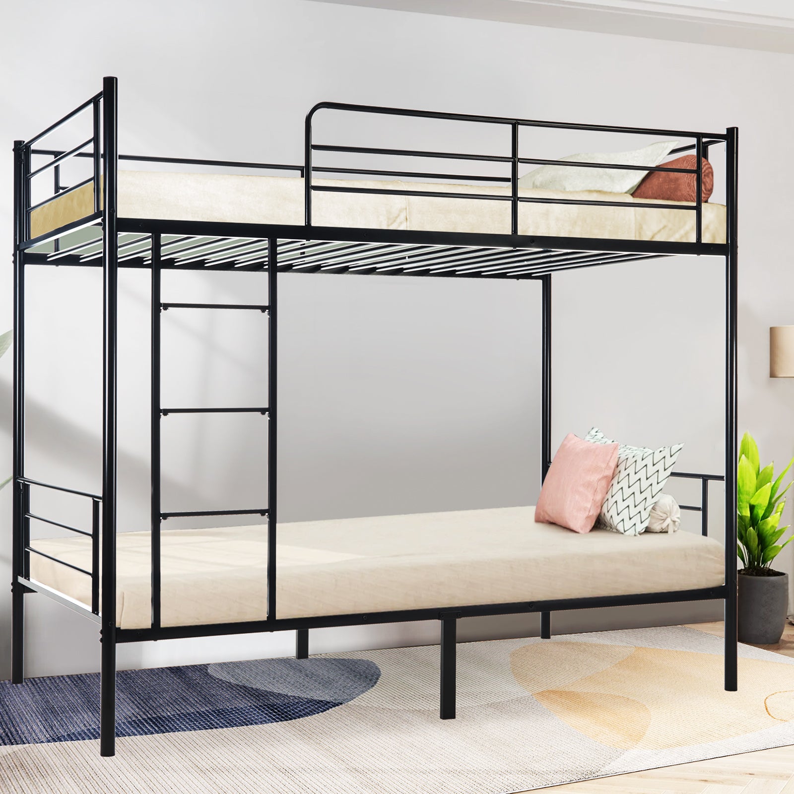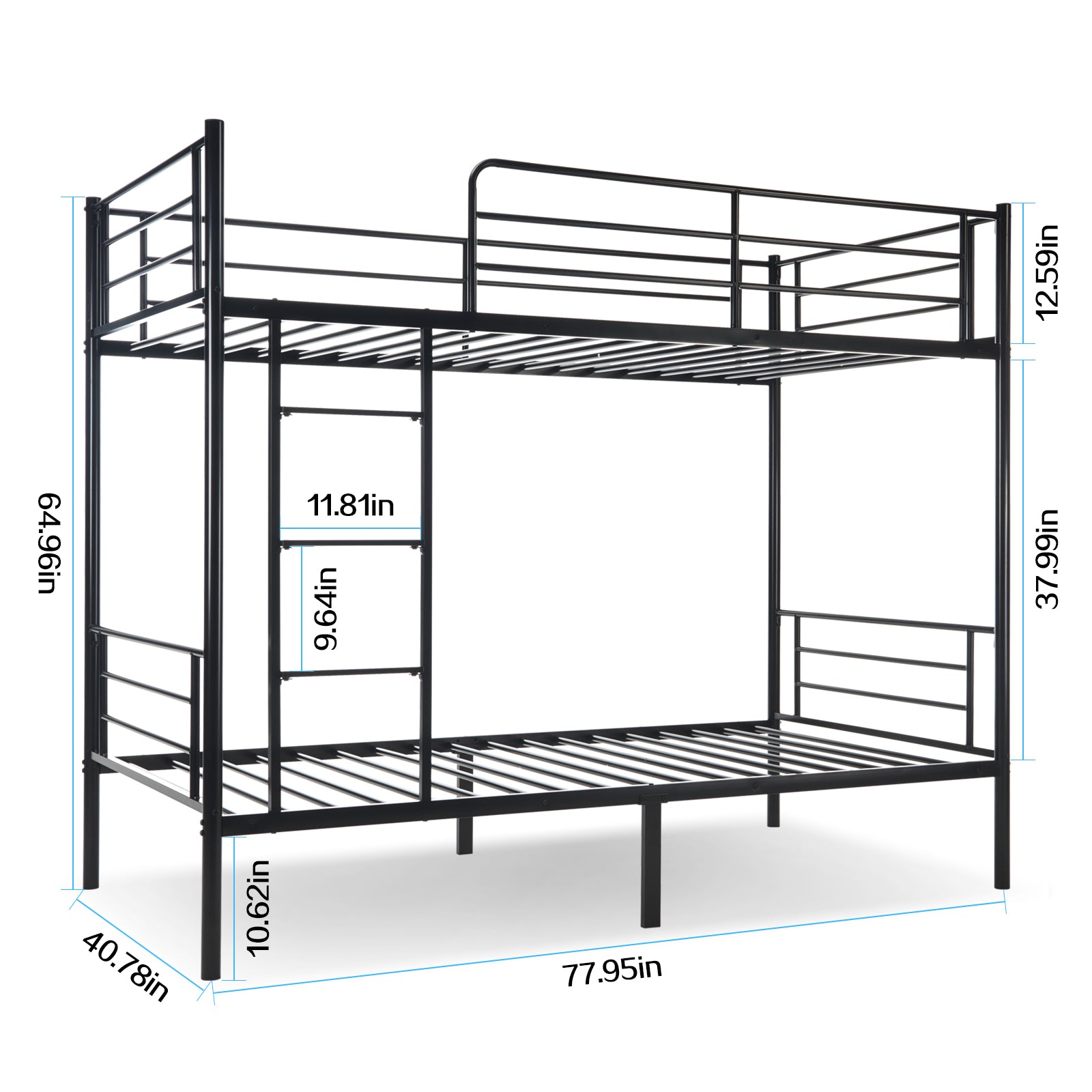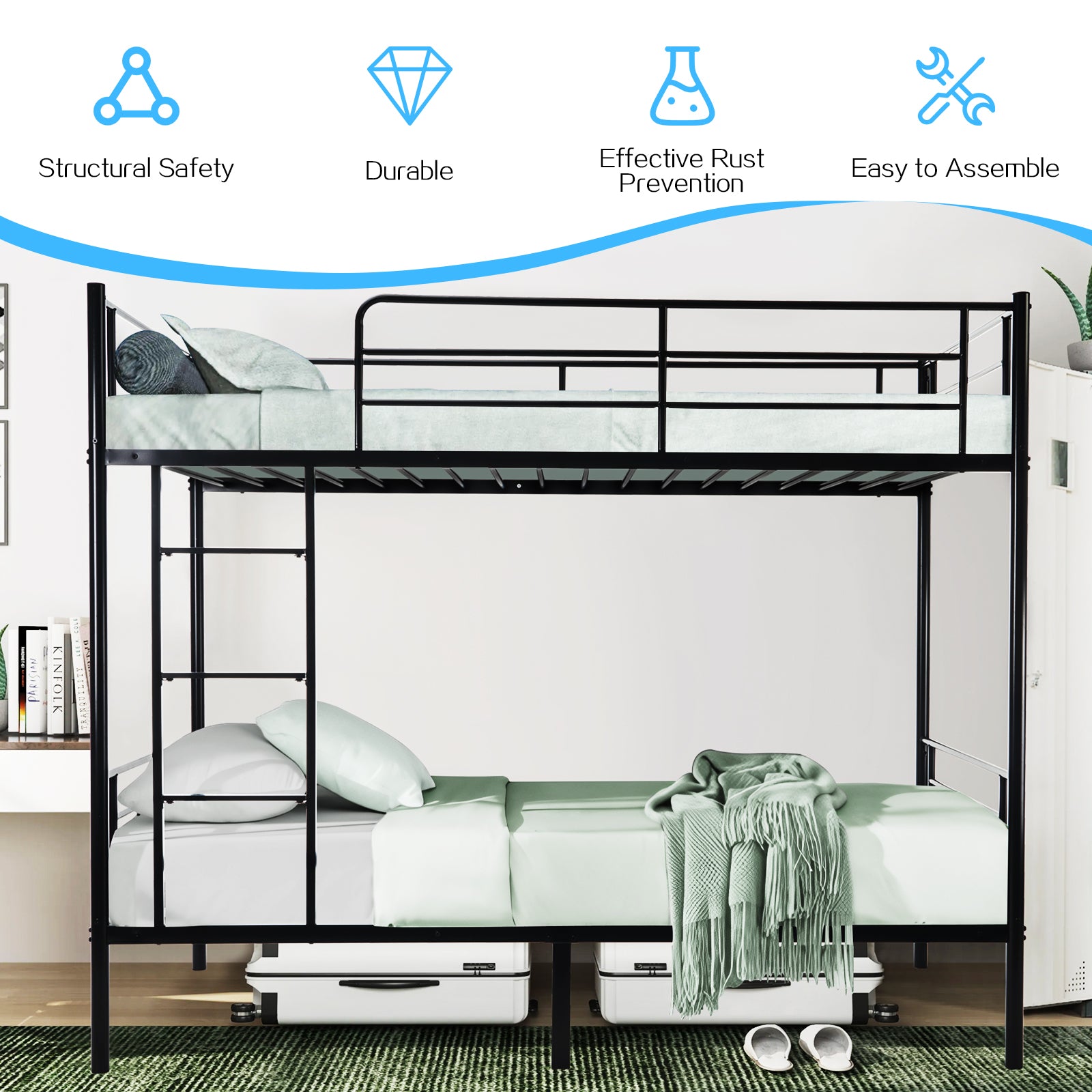 Twin-Over-Full Metal Bunk Bed with Ladder and Guardrails